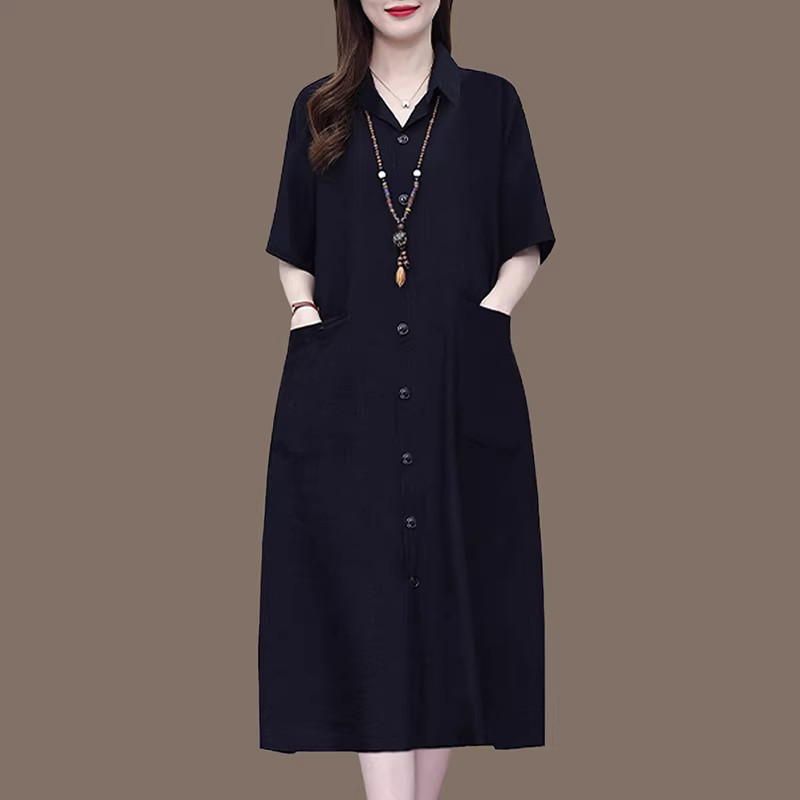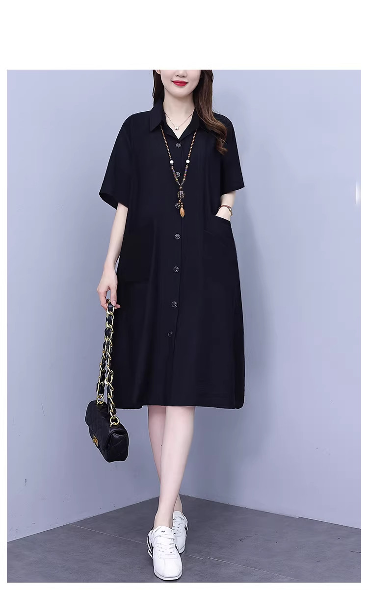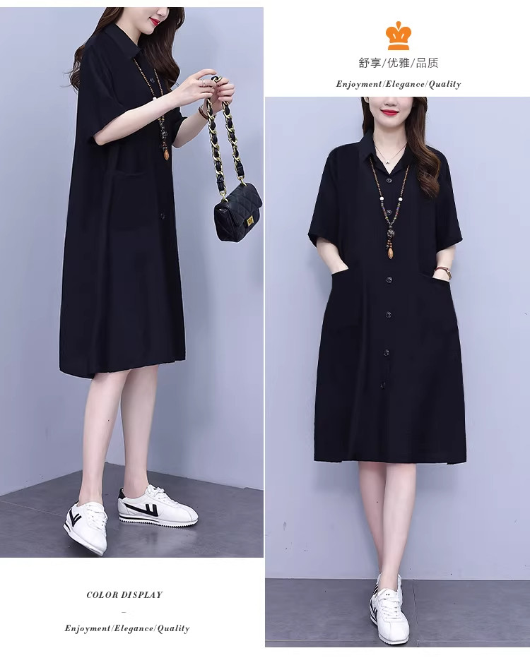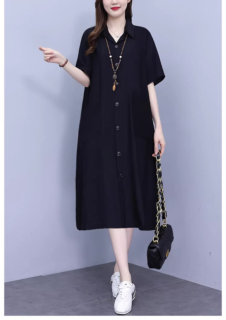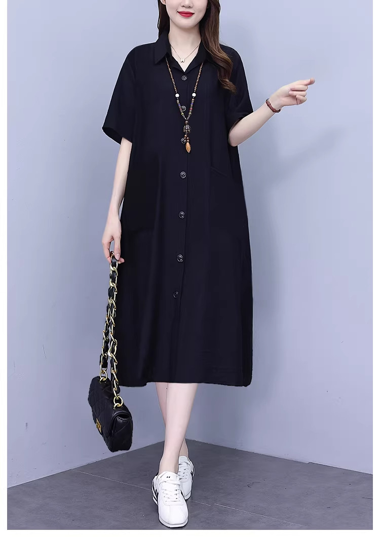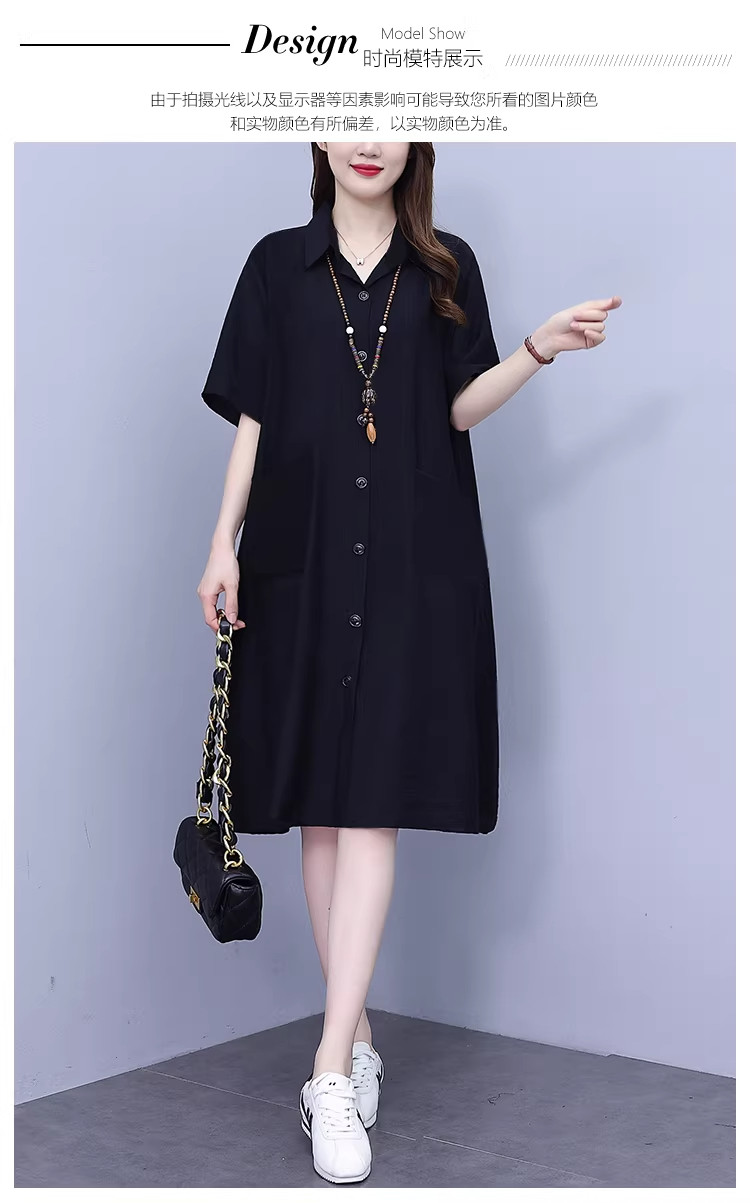 2026夏季新款女装气质胖mm裙子中长款大码宽松百搭显瘦黑色连衣裙