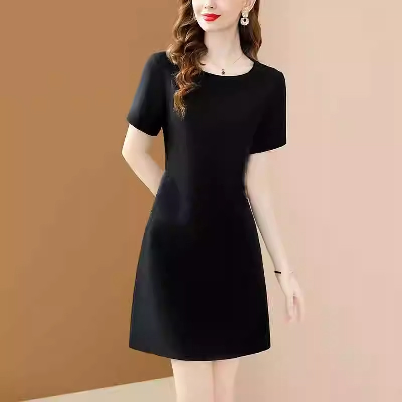赫本风弹力职业黑色显瘦连衣裙女2026夏女新款遮肉加大码A字裙子