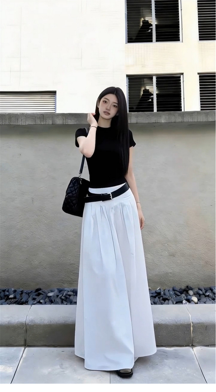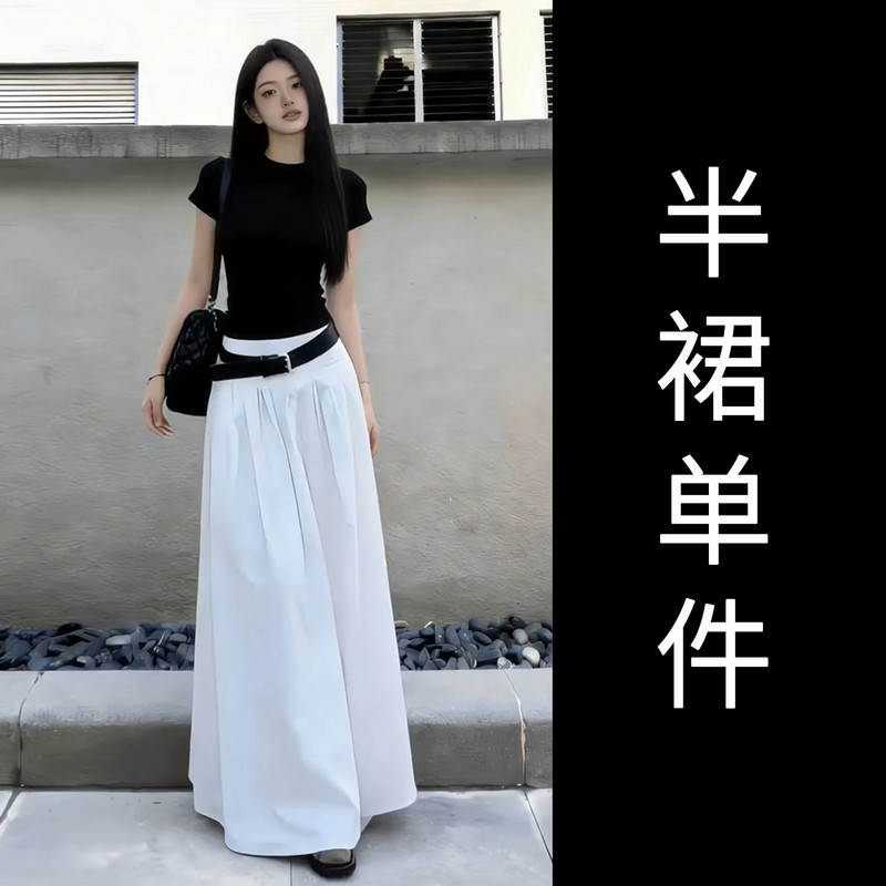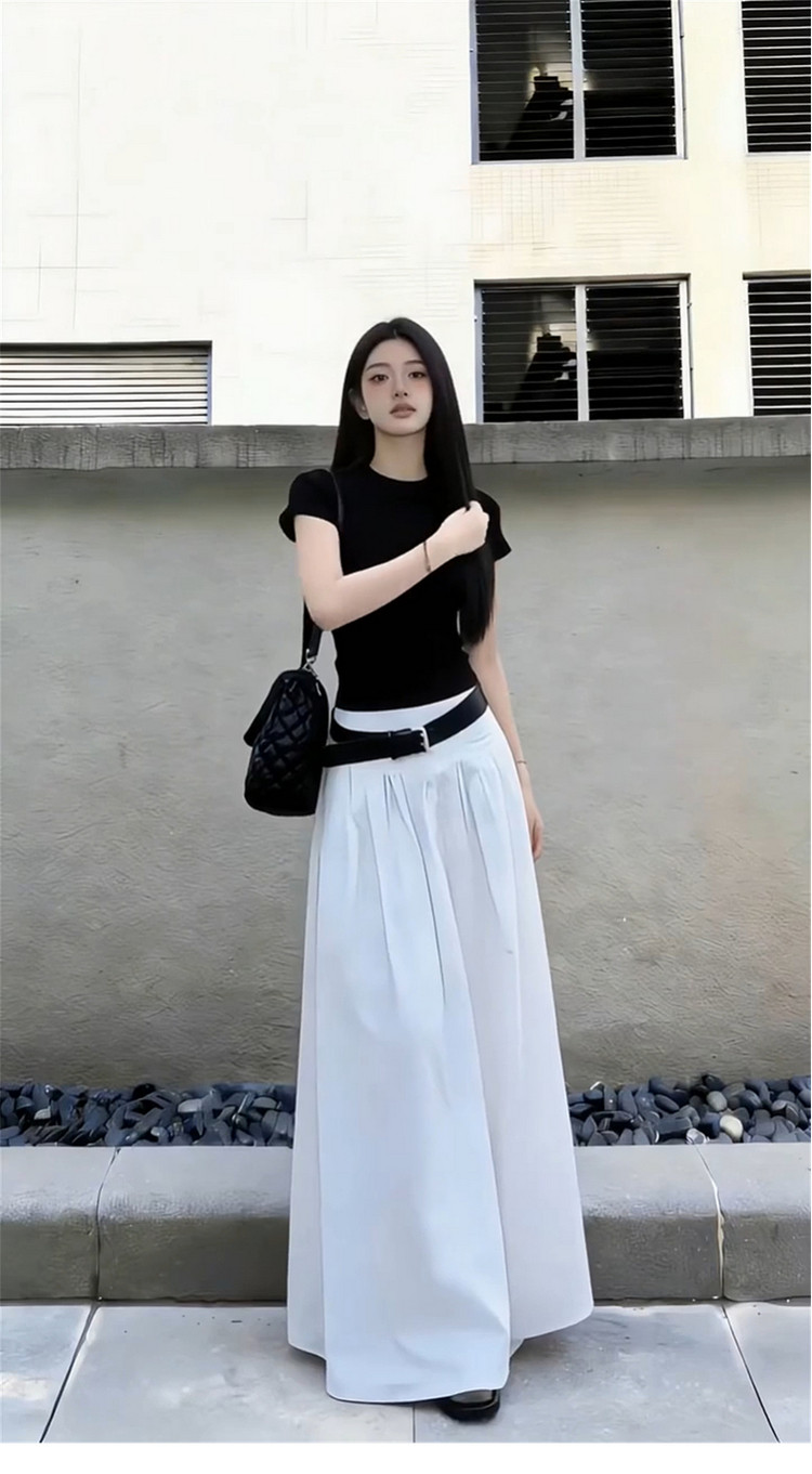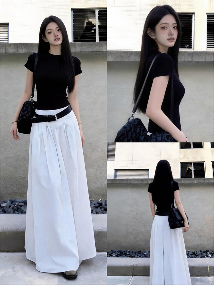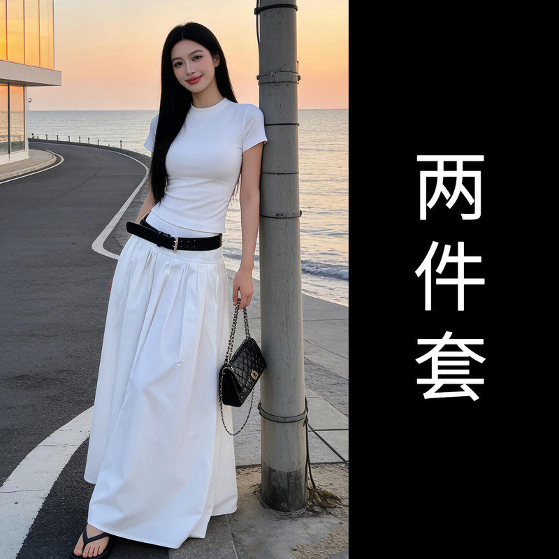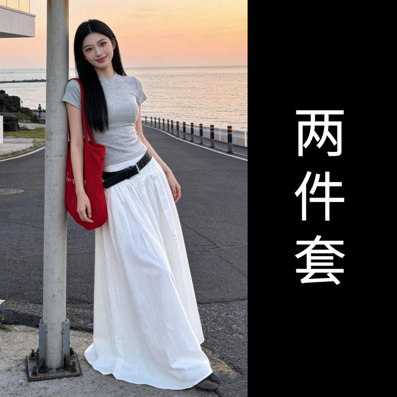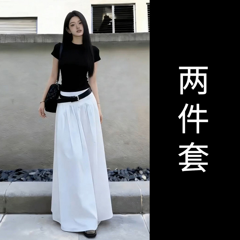 黑色短袖T恤半身连衣裙女夏季2026新款早春漂亮穿搭一整套装长裙