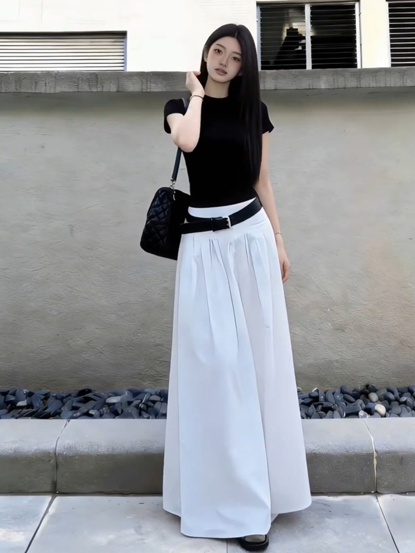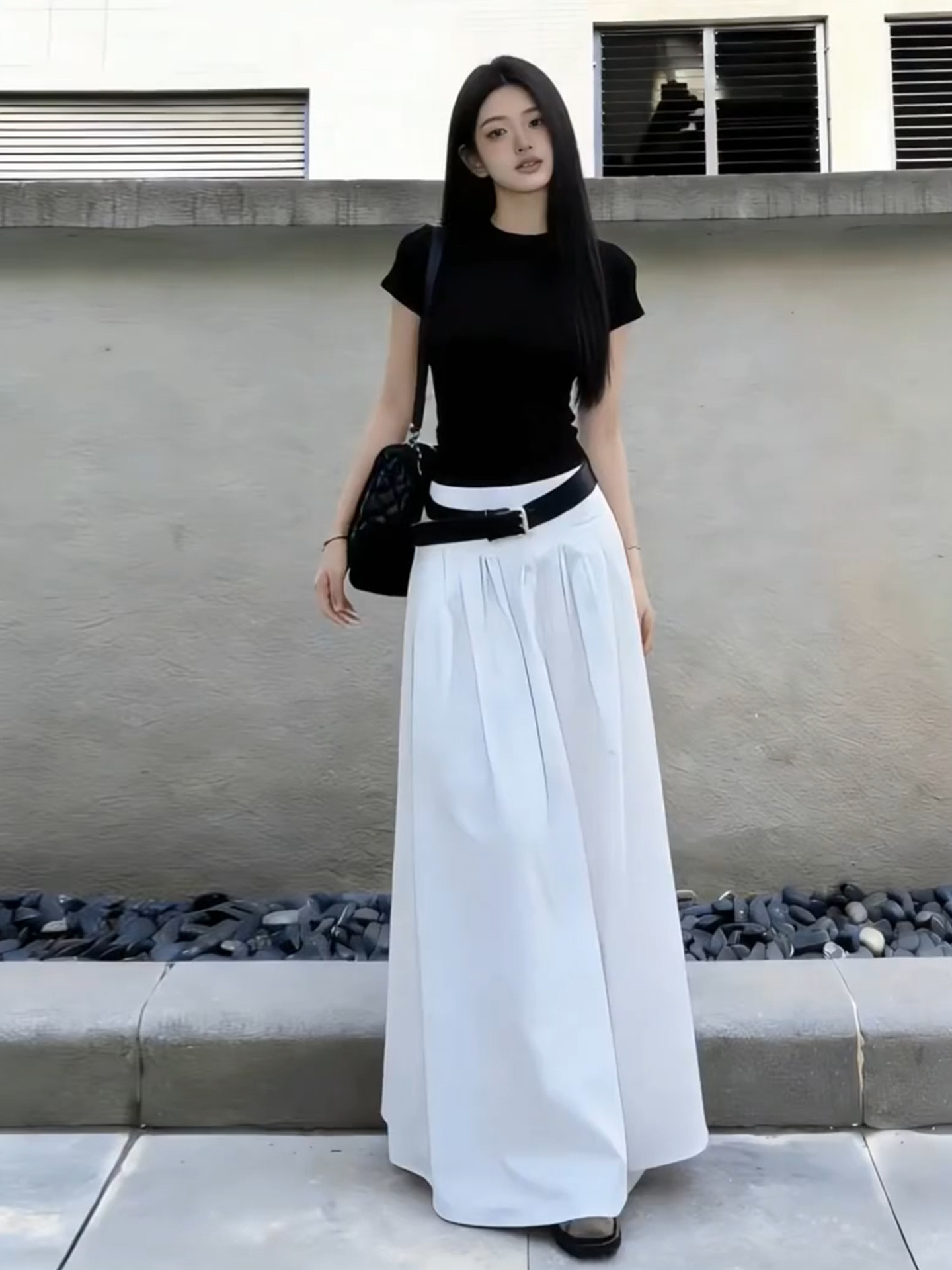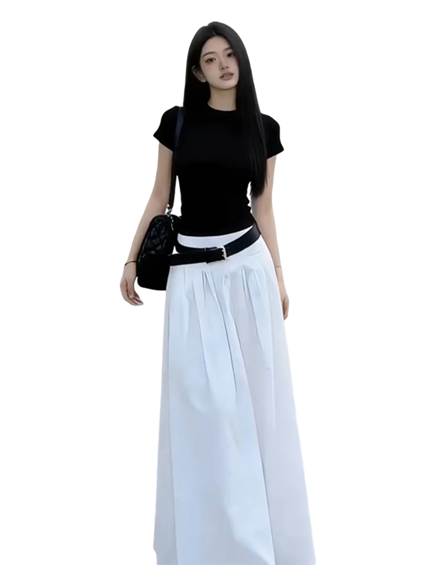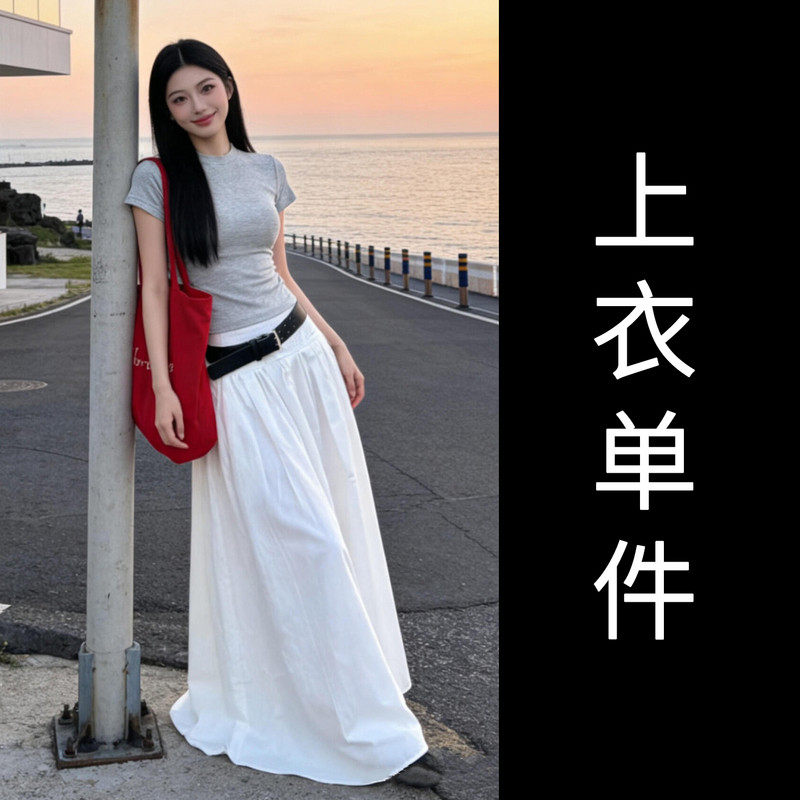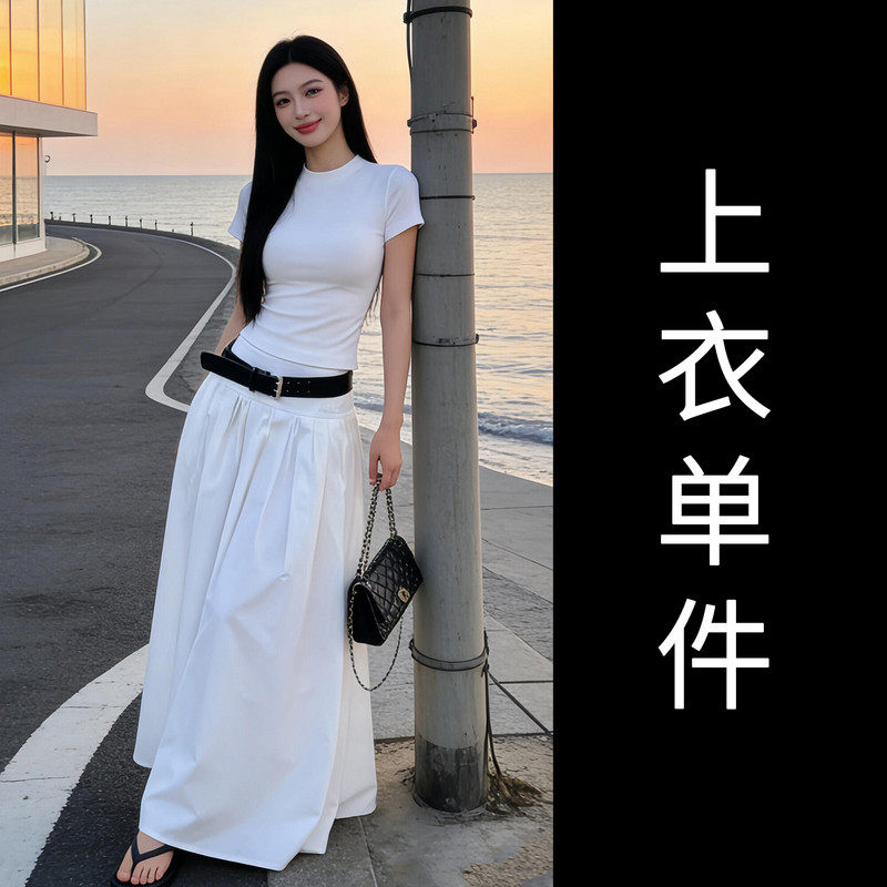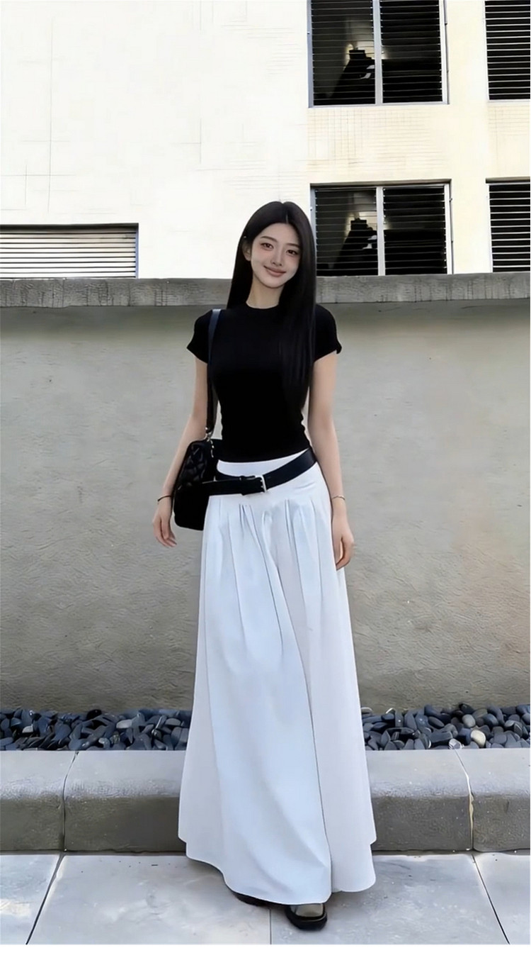 黑色短袖T恤半身连衣裙女夏季2026新款早春漂亮穿搭一整套装长裙