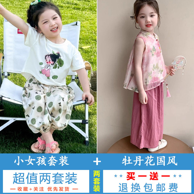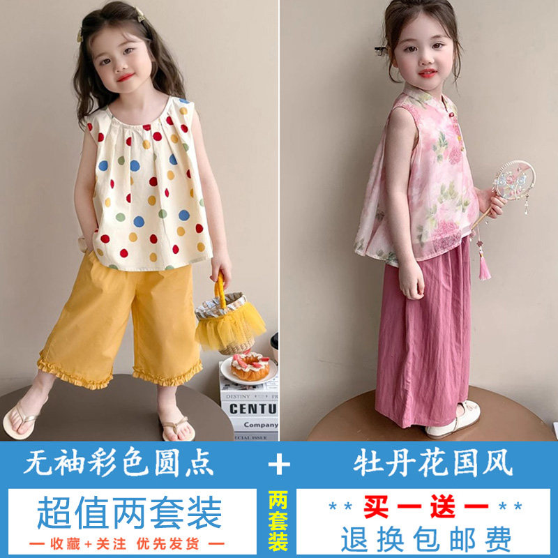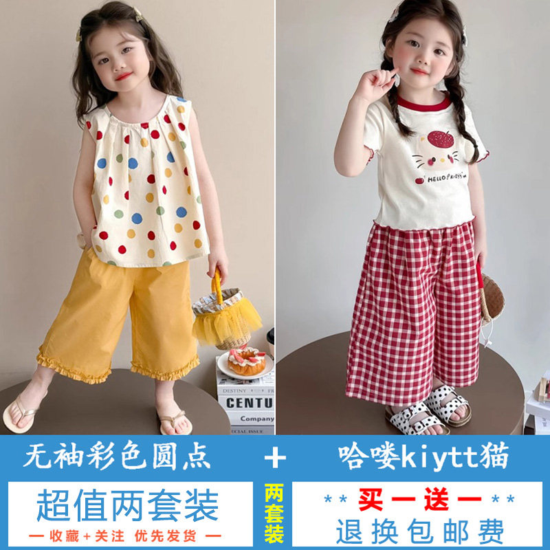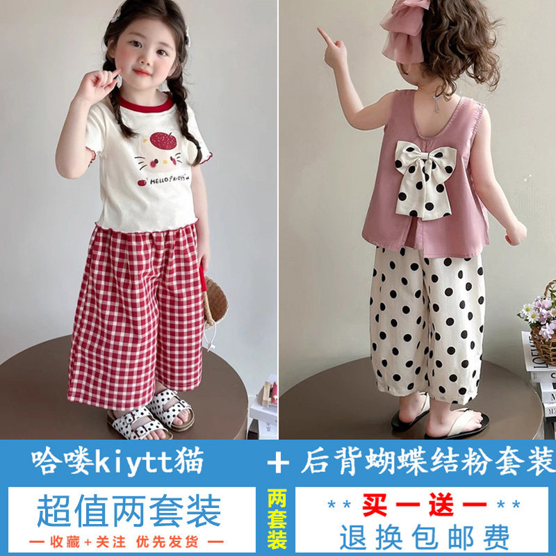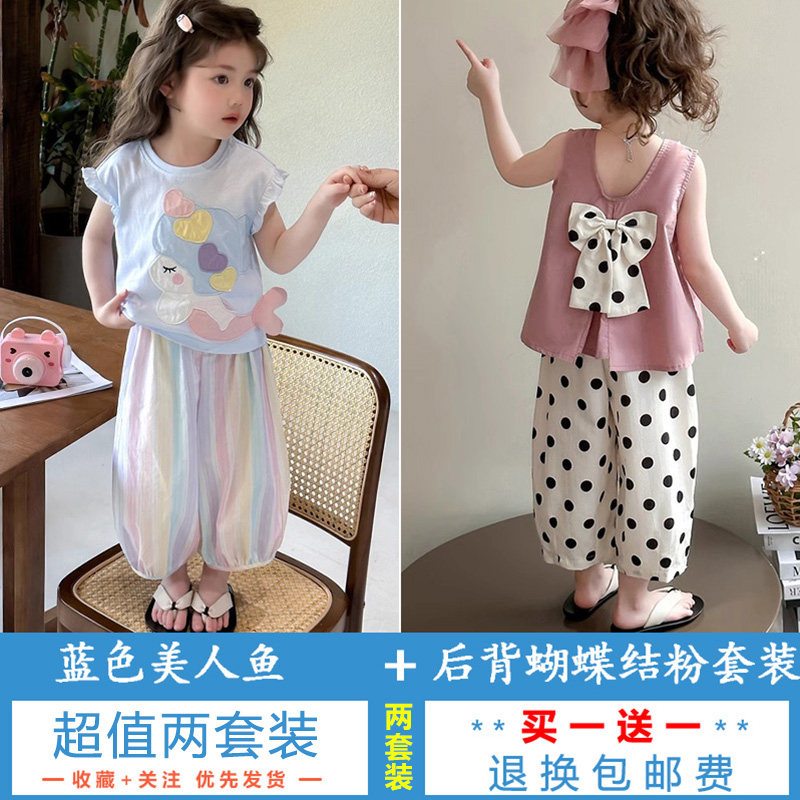 女童夏季短袖套装2026新款中小童女宝宝早秋薄款背心裤子两件套潮
