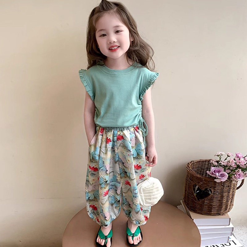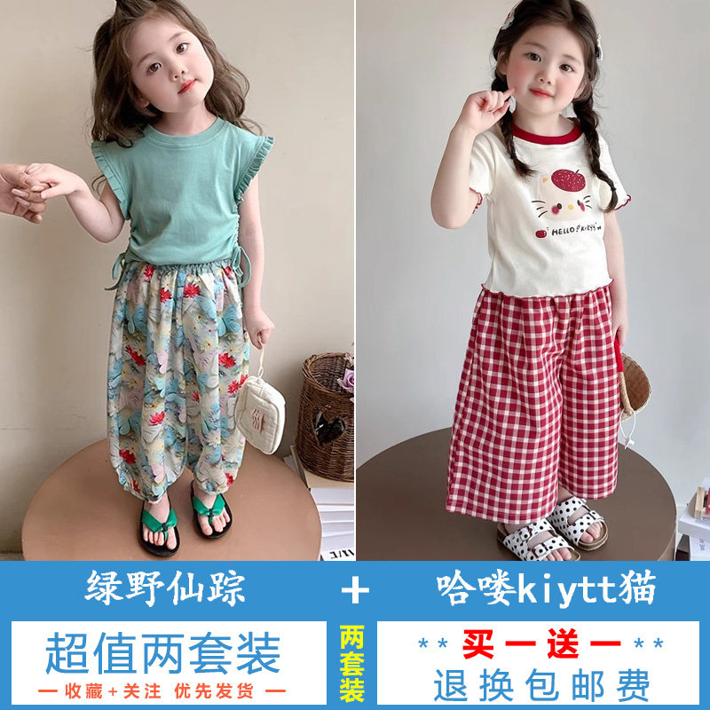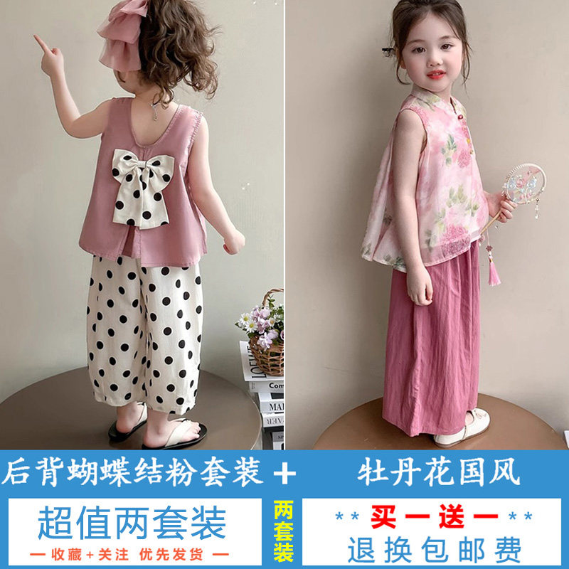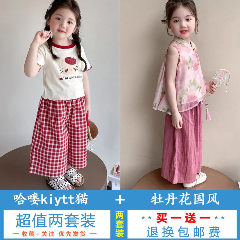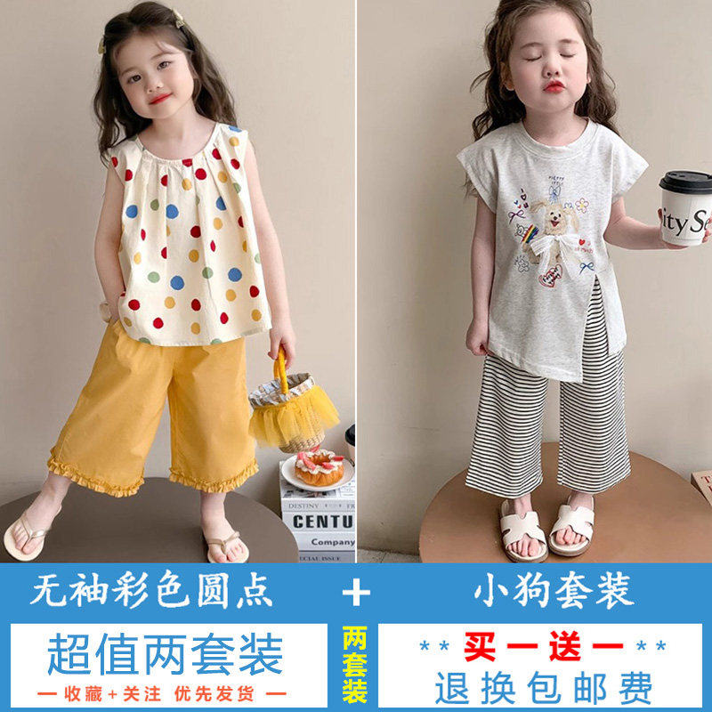 女童夏季短袖套装2026新款中小童女宝宝早秋薄款背心裤子两件套潮